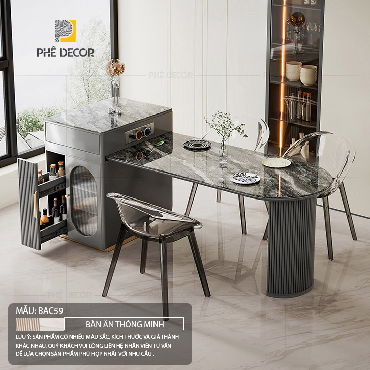 - Hàng nhập khẩu: Nhờ sản xuất dây chuyền số lượng lớn (Mass production), các mẫu bàn đảo thông minh nhập khẩu thường có giá thành rất cạnh tranh và tích hợp sẵn các cơ cấu cơ khí hiện đại mà xưởng thủ công khó làm được.