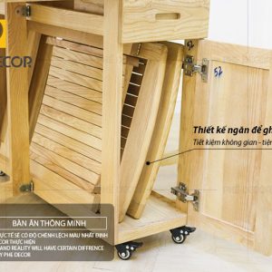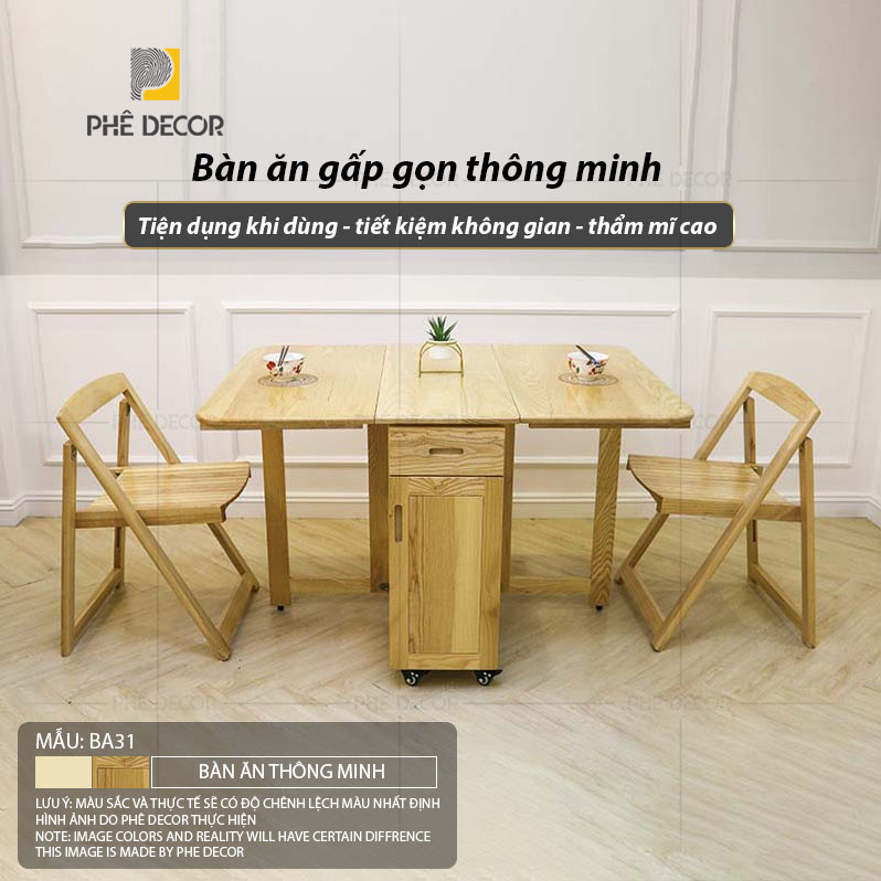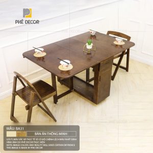 - Ngăn kéo tiện lợi: Ngoài hộc chứa ghế, BA31 còn được ưu ái thiết kế thêm hai hộc kéo phía trên, là nơi lý tưởng để bạn cất giữ dụng cụ ăn uống, khăn trải bàn hay những vật dụng nhỏ khác.