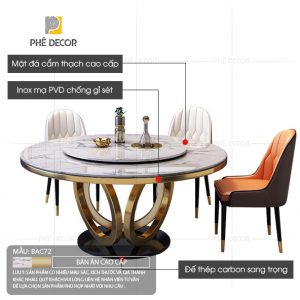 4. Sản phẩm có đi kèm ghế không? Giá niêm yết là giá của bàn ăn. Tuy nhiên, Phê luxury cung cấp rất nhiều mẫu ghế ăn có thể kết hợp hoàn hảo với bàn BAC72. Đội ngũ của chúng tôi sẽ tư vấn để bạn chọn được một bộ bàn ăn hoàn chỉnh với mức giá tốt nhất.