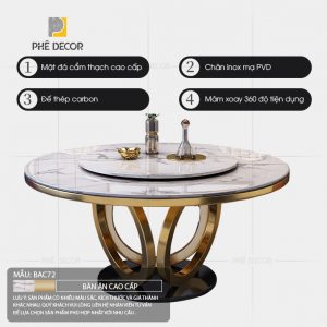 Sự tinh tế của bàn ăn tròn thông minh Positano BAC72 còn được thể hiện qua công năng thông minh, giúp nâng tầm trải nghiệm ẩm thực của cả gia đình. Bàn được tích hợp một mâm xoay 360 độ ở trung tâm, mang lại sự tiện lợi và tương tác tuyệt vời.