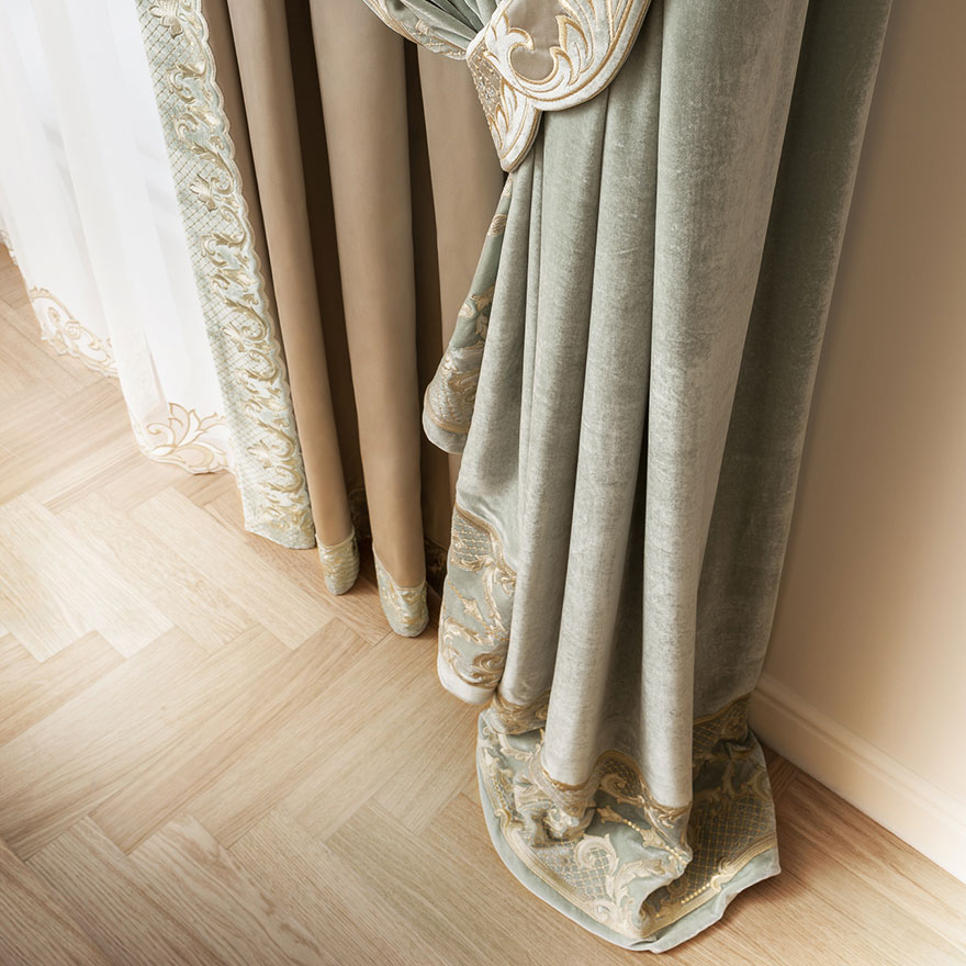 Đây là chất liệu đặc trưng nhất, nơi các họa tiết phức tạp được dệt trực tiếp lên vải. Rèm gấm Italia dày dặn, nặng tay, mang lại vẻ đẹp vương giả, cổ điển và cực kỳ trang trọng, thường được sử dụng trong các không gian lớn, sang trọng.