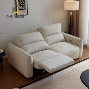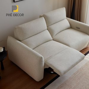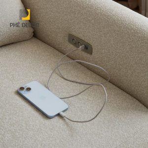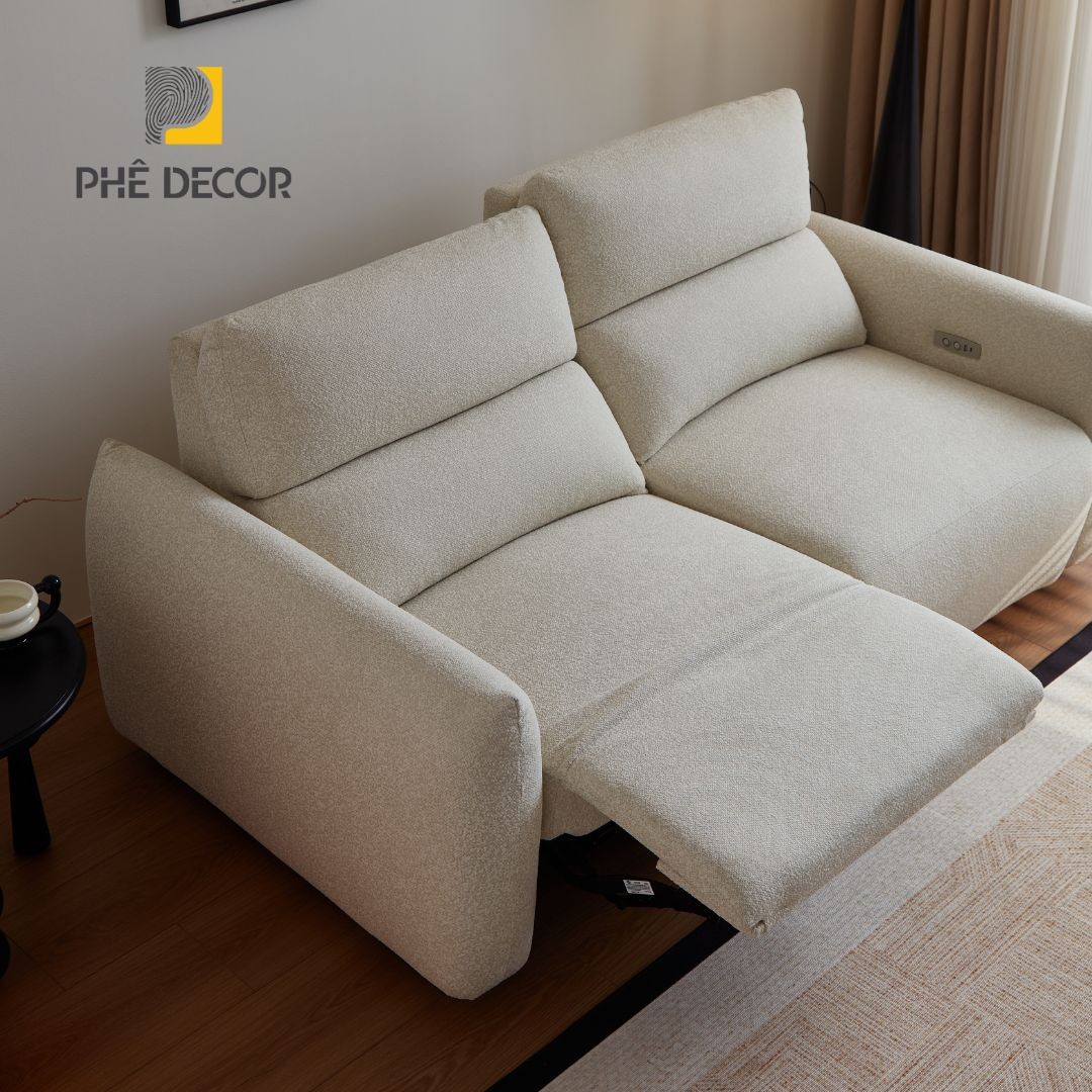 Sofa được trang bị động cơ điện, cho phép ngả lưng và nâng chân một cách nhẹ nhàng, êm ái chỉ bằng một nút bấm. Cụm điều khiển được tích hợp gọn gàng bên hông ghế, đi kèm cổng sạc USB tiện lợi, giúp bạn vừa thư giãn vừa có thể sạc các thiết bị di động mà không bị gián đoạn.