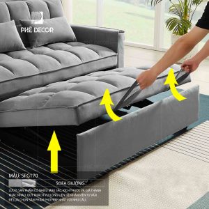 - Biến đổi dễ dàng: Chỉ với vài thao tác kéo đẩy đơn giản, chiếc sofa thanh lịch có thể “hô biến” thành một chiếc giường ngủ rộng rãi, sẵn sàng cho những giấc ngủ ngon.