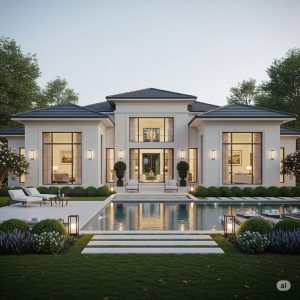 - 150–250m²: Đây là diện tích lý tưởng cho một căn biệt thự 1 tầng tân cổ điển. Công trình thường có thêm sân vườn, hành lang bao quanh. Nội thất bên trong cũng được thiết kế theo phong cách tân cổ điển nhẹ nhàng, đồng bộ với kiến trúc bên ngoài.