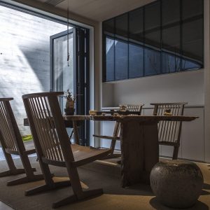 Ánh sáng được xem là một yếu an quan trọng, giúp kết nối không gian bên trong và bên ngoài. Hệ thống cửa kính lớn từ sàn đến trần được sử dụng tối đa để đón ánh sáng tự nhiên, đồng thời mở ra tầm nhìn ra khu vườn xanh mát. Mỗi món đồ trang trí, từ bức tranh, bức tượng đến một cành cây khô, đều được đặt ở một vị trí có chủ đích, tạo nên những góc sắp đặt đầy tính nghệ thuật. Sự tinh tuyển trong trang trí này cũng là yếu tố thường thấy trong các căn Penthouse cao cấp.