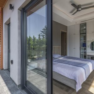 Các phòng ngủ được thiết kế với gam màu trung tính và sáng, tạo cảm giác trẻ trung, sạch sẽ và thư thái. Đặc biệt, phòng ngủ master là một tổ hợp không gian sống tiện nghi, bao gồm cả phòng làm việc, phòng thay đồ và WC, tất cả đều được bố trí hợp lý để tối ưu hóa công năng và sự thoải mái.