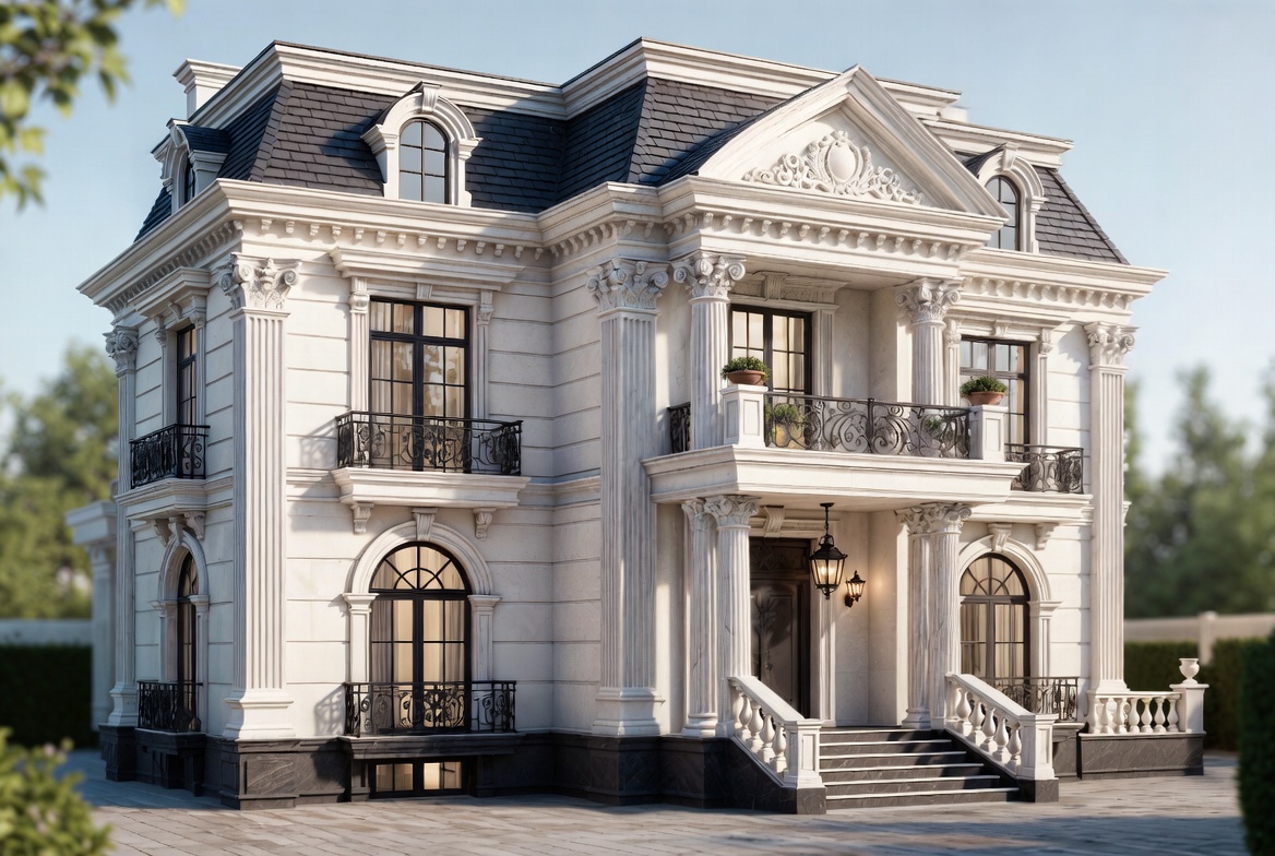 - Tại sao phong cách tân cổ điển lại được coi là kiến trúc trường tồn? Vẻ đẹp của phong cách này dựa trên các tỷ lệ hình học chuẩn mực và sự tinh tế trong trang trí, giúp công trình luôn giữ được sự sang trọng, không bị lỗi thời theo năm tháng.