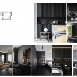 - Đặc điểm nổi bật: Đường nét cực kỳ tinh gọn, hệ thống tủ kệ âm tường không tay nắm, tập trung vào sự tương phản về chất cảm bề mặt (texture) thay vì hoạ tiết. Sử dụng vật liệu thô cao cấp như bê tông mài, đá tự nhiên nguyên khối, gỗ khổ lớn.