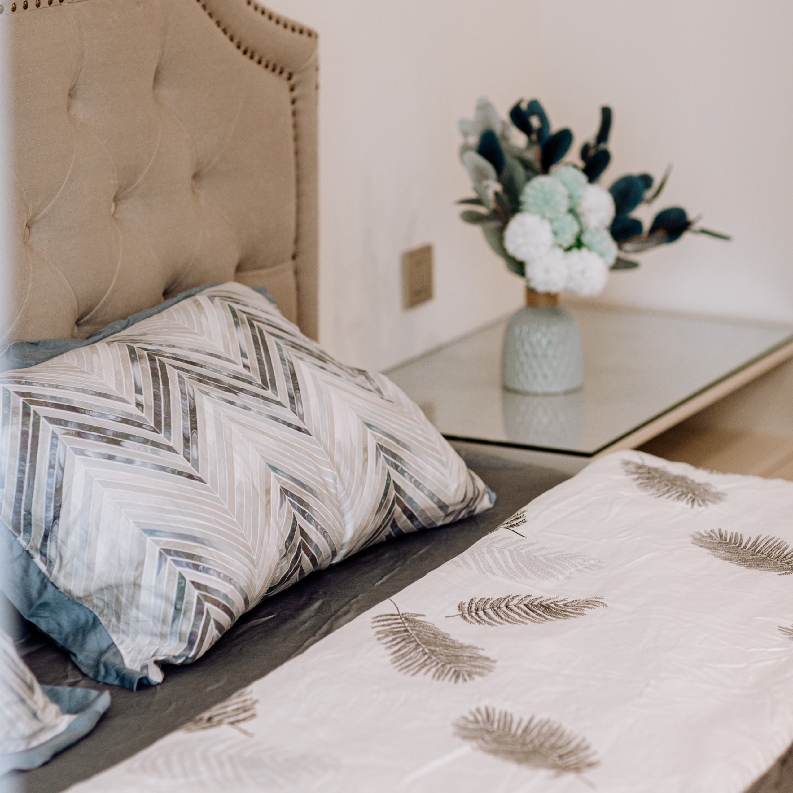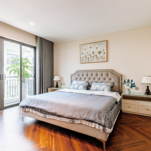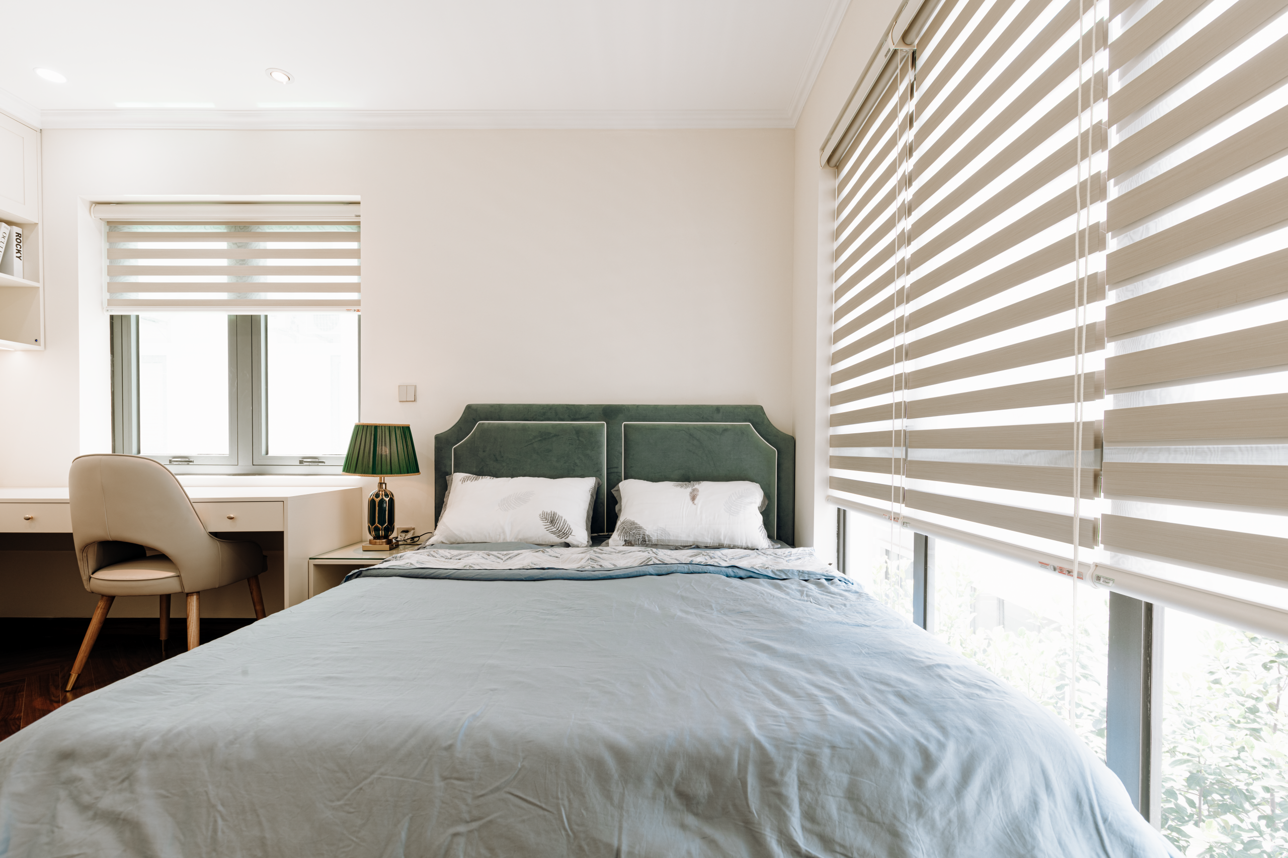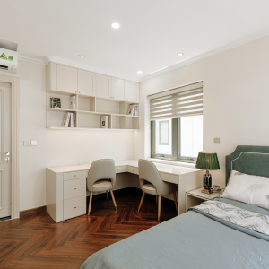 Phòng ngủ là nơi thể hiện rõ nhất cá tính của gia chủ. Với dự án thiết kế liền kề Gamuda Garden của nhà anh Mạnh, phòng ngủ Master được ưu tiên về diện tích và tầm nhìn, mang đến một không gian nghỉ ngơi thư thái tuyệt đối.