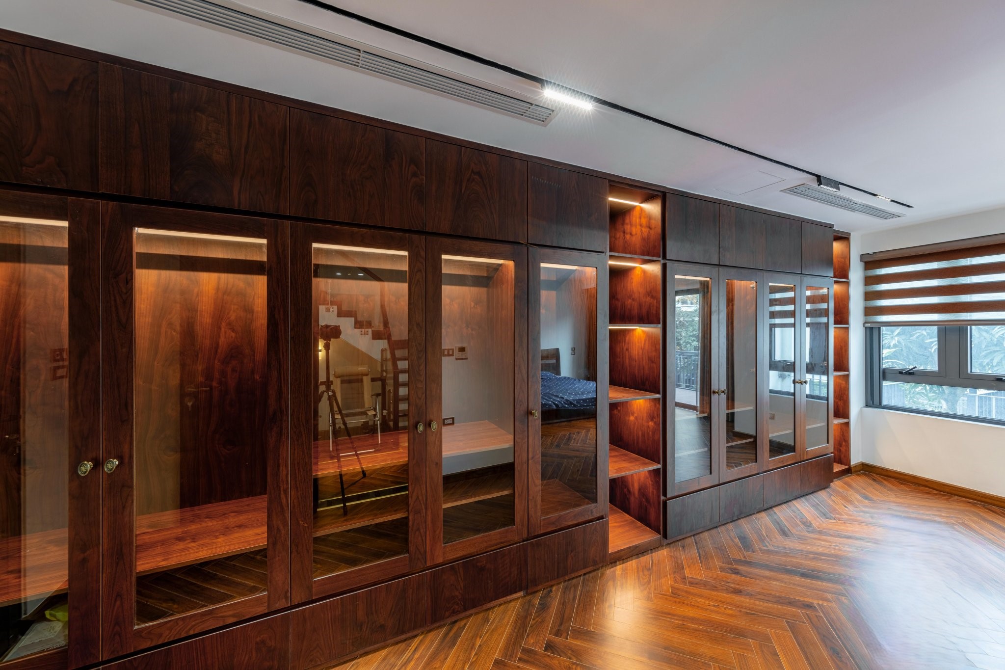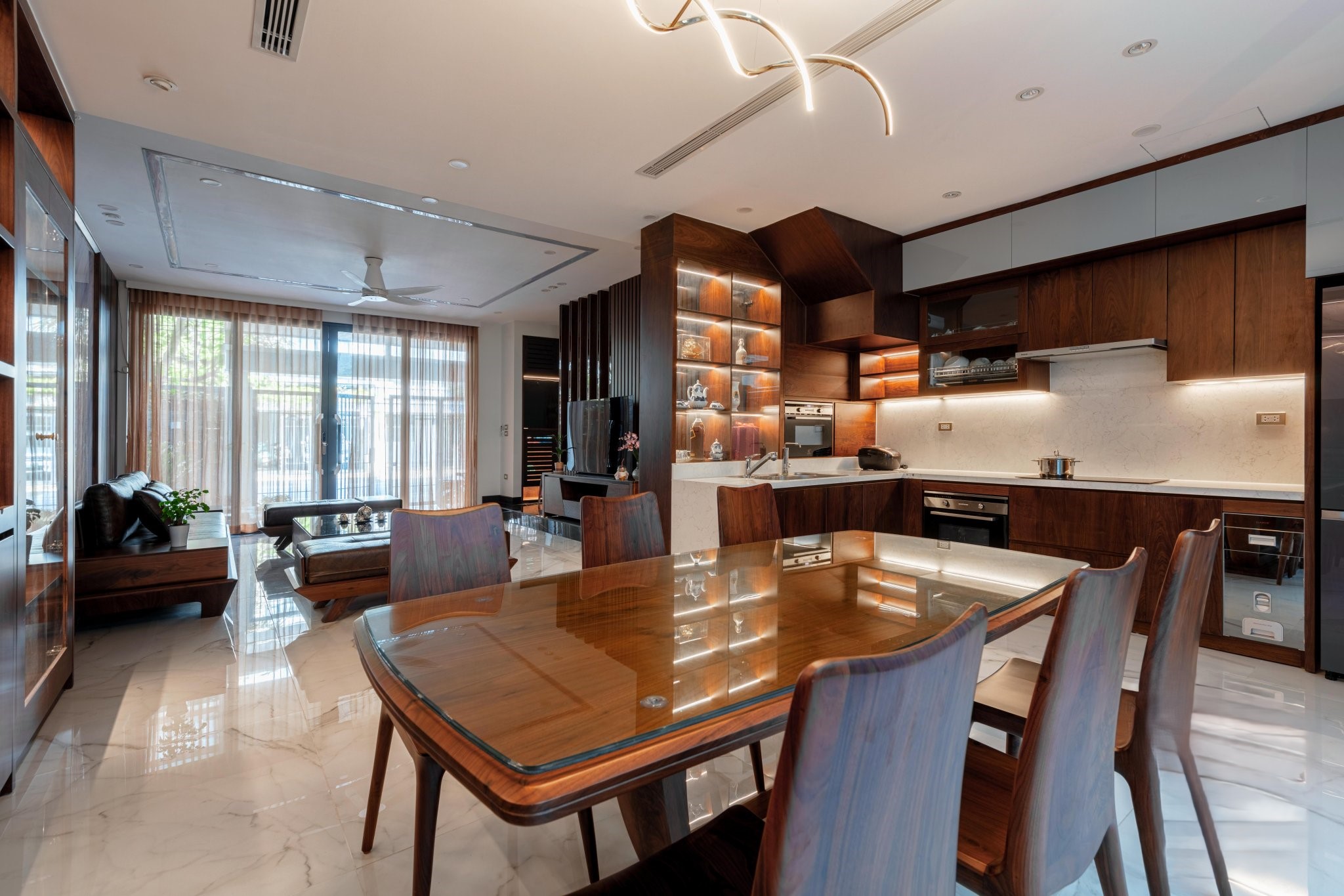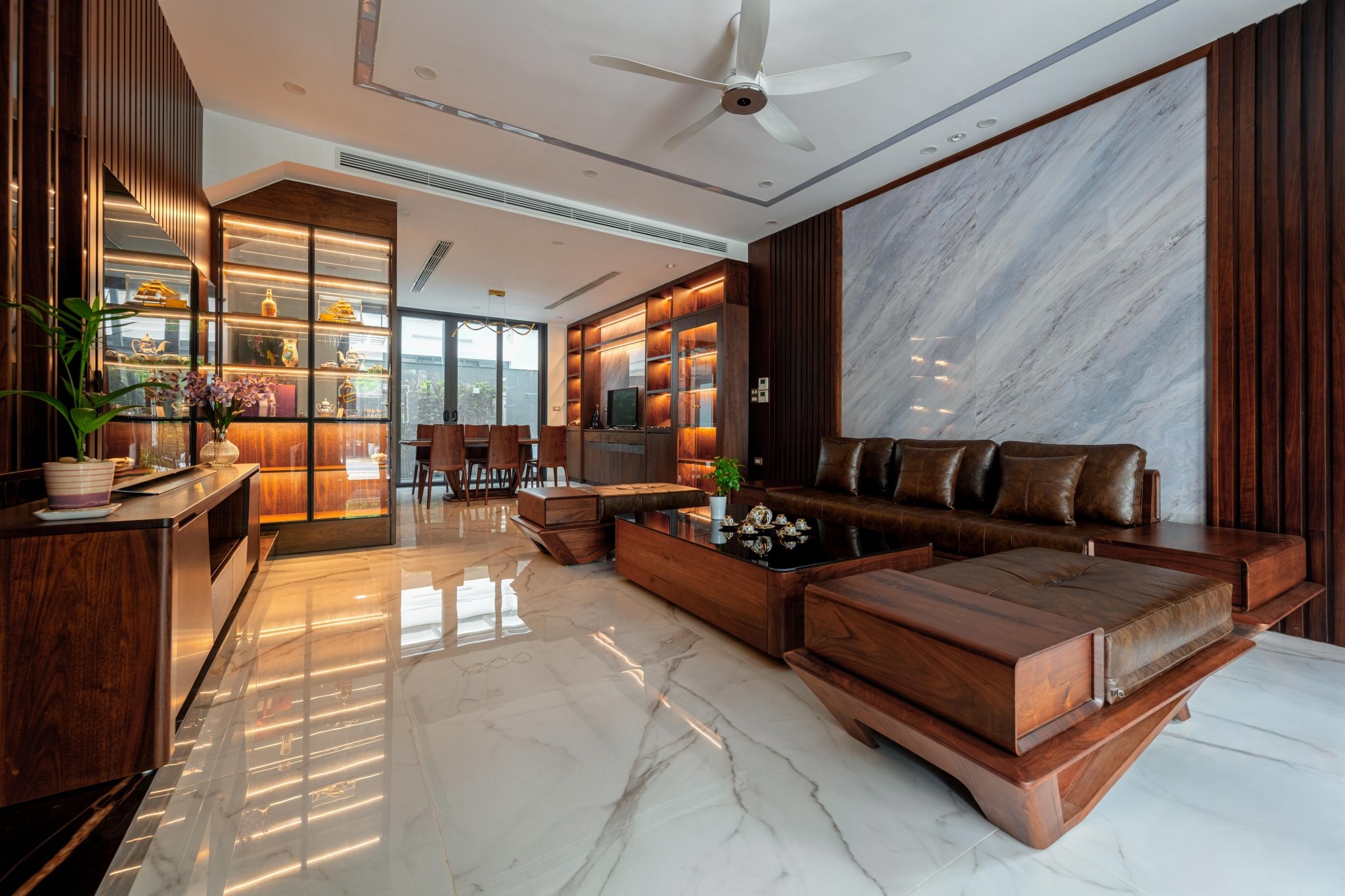 Vật liệu chủ đạo Gỗ óc chó tự nhiên, Vách nan gỗ, Đá Marble, Da bò Ý